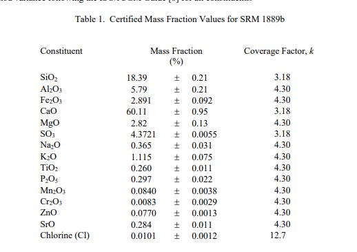 SRM 1889b 成分的認證值在表 1 中報告為收到時的質量分數 [1]。 NIST 認證值是 NIST 對其準確性具有最高置信度的值,因為所有已知或可疑的偏差來源都已被調查或考慮在內 [2]。認證值是根據 NIST 和合作執行的分析結果對真實值的當前最佳估計使用表 4 中列出的儀器和經典測試方法的實驗室。